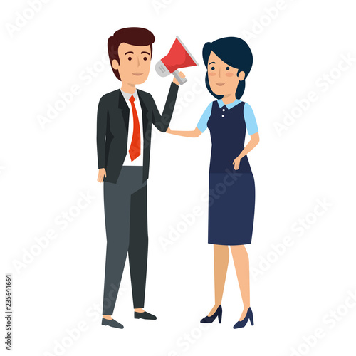 elegant business couple with megaphone