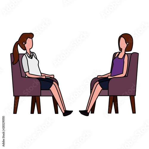 elegant businesswomen workers in the sofa