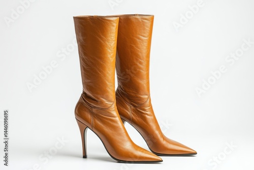 Elegant caramel leather boots pointed toe heels stylish fall footwear perfect for autumn fashion