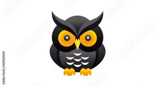 Elegant cartoon owl with glowing golden eyes and feet, a symbol of wisdom and mystery, perfect for magical designs, children's books, or branding for nature based companies