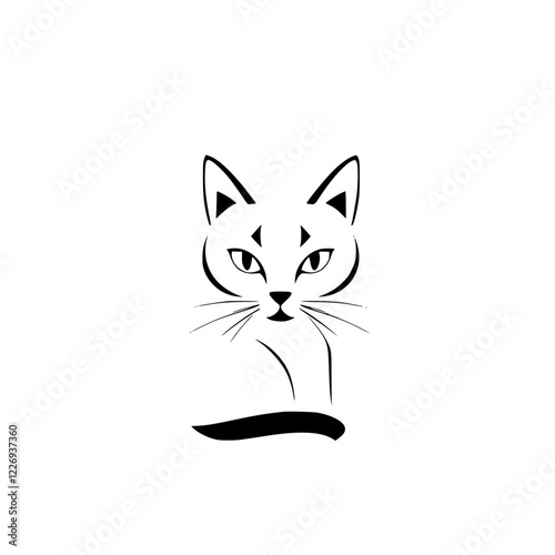 Elegant Cat Portrait: Minimalist Black and White Feline Art. A simple yet stylish vector graphic design, perfect for pet lovers and graphic design enthusiasts.