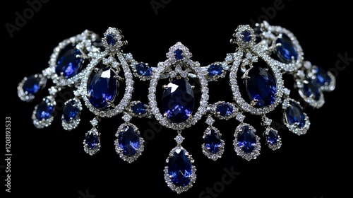 Elegant chandelier earrings with a cascade of oval-cut blue sapphires and small diamonds generative ai