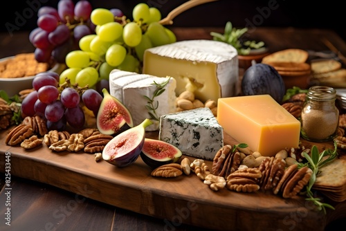Elegant cheese platter with assorted fruits, nuts, and crackers. Elegant cheese platter with assorted fruits, nuts, and crackers.