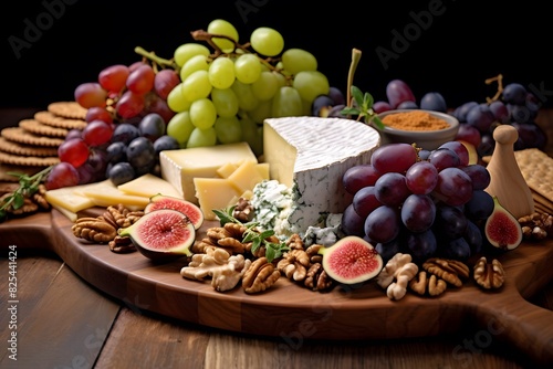 Elegant cheese platter with assorted fruits, nuts, and crackers. Elegant cheese platter with assorted fruits, nuts, and crackers.