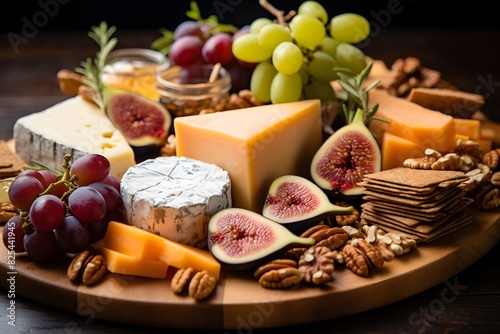 Elegant cheese platter with assorted fruits, nuts, and crackers. Elegant cheese platter with assorted fruits, nuts, and crackers.