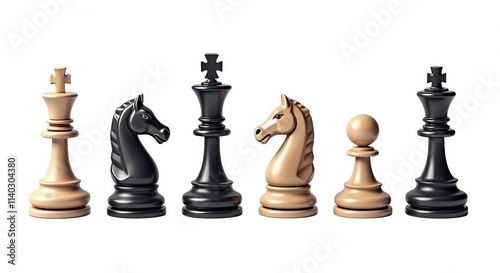Elegant Chess Pieces Illustration - Realistic Chess Set for Strategy and Leisure Enthusiasts