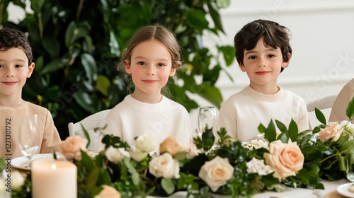 Elegant Children searching for the hidden afikomen during a lively family Seder symbolic of the joy and games of Passover