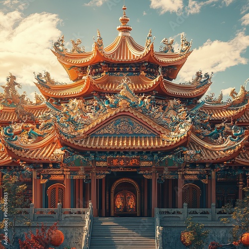 Elegant Chinese garden architecture with carved stone bridges and tranquil pathways picture