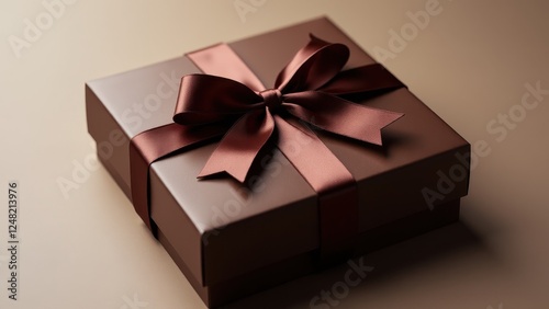 Elegant chocolate box mockup with a satin ribbon bow, perfect for showcasing luxury packaging designs.