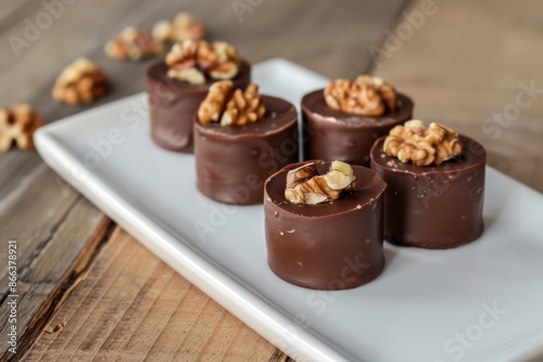 Elegant Chocolate Delight: Gourmet Chocolates on a Minimalistic Plate