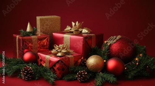 Elegant Christmas Gifts Red Gold Holiday Festive Season Celebration