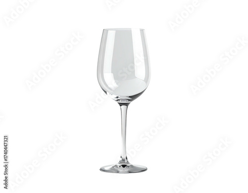 Elegant, clear, stemmed wine glass standing upright against a black backdrop