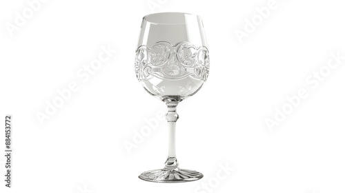 Elegant clear wine glass with intricate floral designs, perfect for formal dining settings and special celebrations, featuring a sleek stem and wide bowl.
