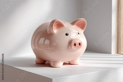 Elegant close-up of a pink ceramic piggy bank, symbolizing financial savings and future security, set against a clean, modern background with subtle light play.