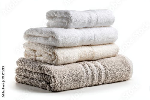 Elegant Collection of Soft Towels and Bed Sheets Displayed on Crisp White Background