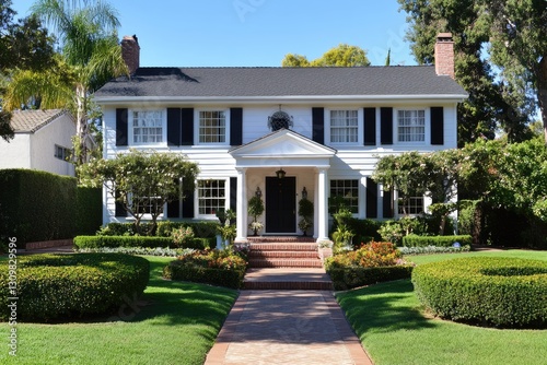 Elegant Colonial Home Set in a Tranquil Neighborhood with Lush Front Yard and Charming Pathway