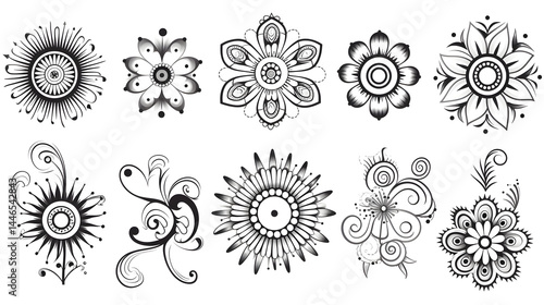 Elegant Colorless Floral Patterns with Geometric Elements for Design Projects