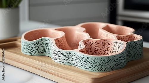 Elegant compartmentalized dish with soft color palette for kitchen accent