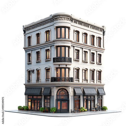 Elegant Corner Building Architecture Design Modern White Brick Exterior 3d home city cafe high house