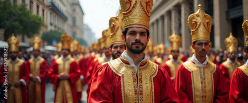 Elegant Corpus Christi Procession: Striking Ceremonial Displays with Cultural Motifs and Artistic Presentation - Photo Stock Concept