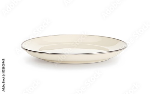 Elegant Cream Dinner Plate with Silver Rim, Porcelain Dishware, Tableware, Serving Dish