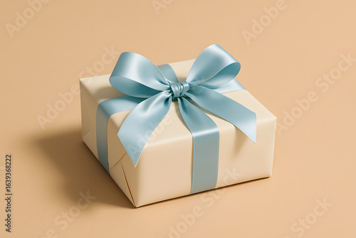 Elegant Cream Gift Package with Pastel Blue Bow on Beige Background – Studio Photo