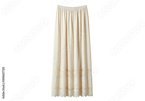 Elegant Cream Lace-Trimmed Curtain Panel isolated on transparent background
