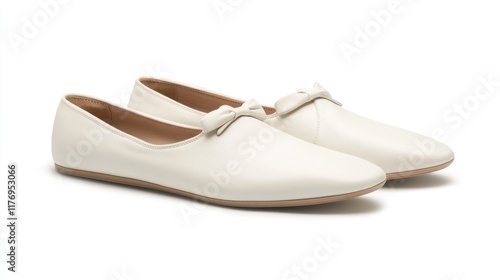 Elegant Cream Leather Ballerina Flats with Bow Detail: Perfect for a sophisticated and comfortable look.
