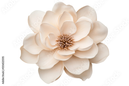 Elegant cream magnolia flower with soft petals on black background, cut out