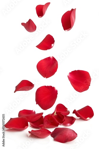 Elegant Crimson, A Cascade of Red Rose Petals on a White Backdrop