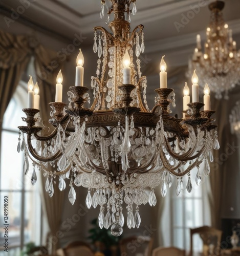 Elegant crystal chandelier with intricate vases, ornate, stylish