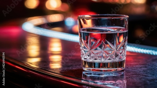 Elegant Crystal Whiskey Glass on Wooden Bar