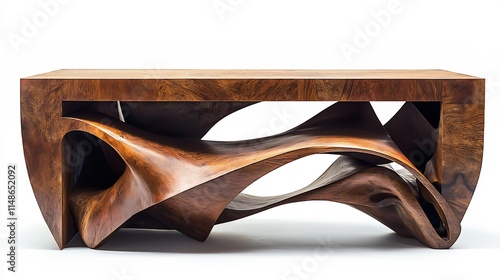 Elegant Curved Wooden Table Showcasing Natural Grain Patterns and Warm Tones Creating an Inviting Atmosphere for Modern Home or Office Decor