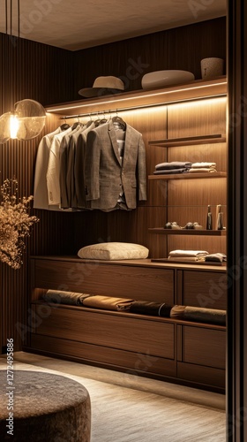 Elegant Custom Wardrobe Design with Modern Lighting and Accessories