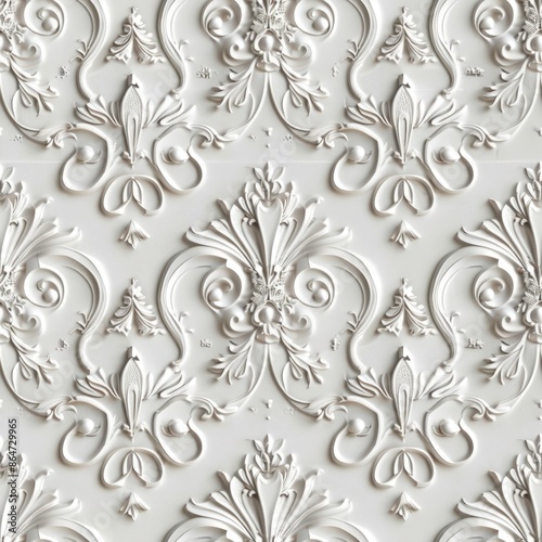 Elegant Damask Texture with Intricate Details on White Background for Luxury Design Projects