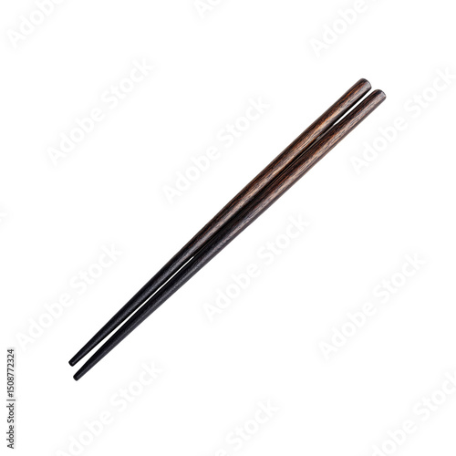 Elegant Dark Wooden Chopsticks on Transparent Background