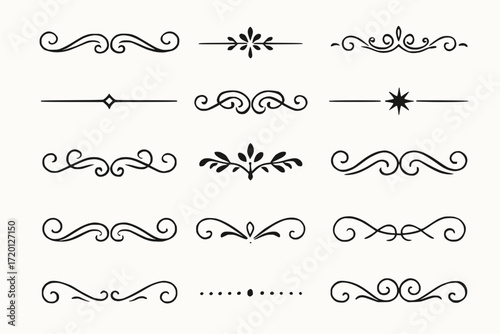 Elegant Decorative Divider Icon Set in Minimal Black Line Style for Vintage and Formal Designs