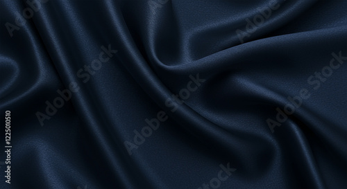 Elegant deep blue satin fabric with smooth folds. Shiny silk texture for luxury design. Perfect background for web banners, flat lays, or festive themes like Christmas and Valentine's Day.