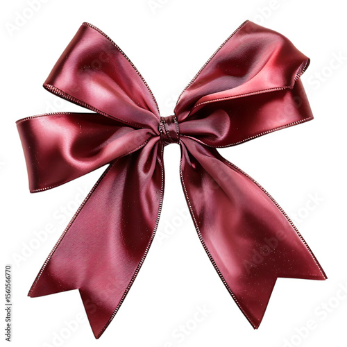 Elegant deep red satin ribbon bow with shimmering texture isolated on transparent background