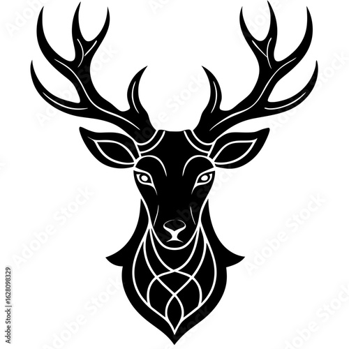 Elegant deer head with antlers decorative design silhouette vector illustration