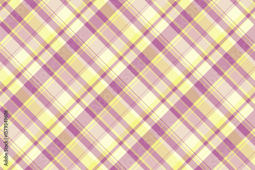 Elegant diagonal plaid pattern in soft pastel yellow and purple hues. Perfect for textile designs, website backgrounds, or stationery.