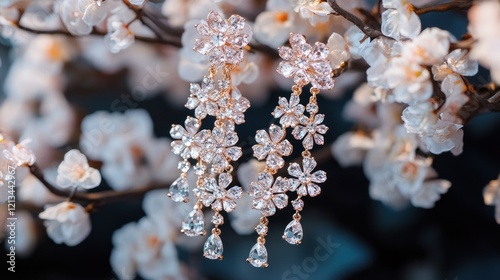 Elegant Diamond Flower Earrings Among Cherry Blossoms