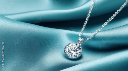 Elegant Diamond Pendant Necklace on Smooth Satin Fabric Background