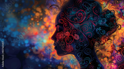 Elegant digital art featuring a womans silhouette adorned with intricate henna patterns, capturing traditional beauty and body decoration.