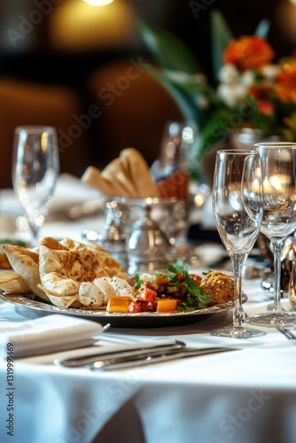 Elegant dining setting with gourmet appetizers on a luxurious table.