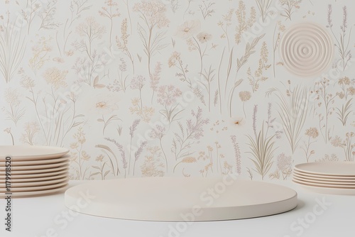 Elegant Dining Setup with Plates and Floral Wallpaper Background