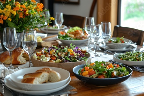 Elegant dinner gathering cozy home food photography warm atmosphere table setting culinary delight