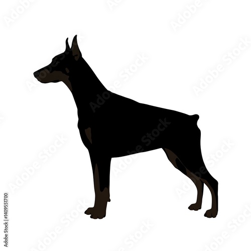 Elegant Doberman Pinscher Silhouette Standing Profile against White Background Canine Breed Dog Pet Animal Illustration