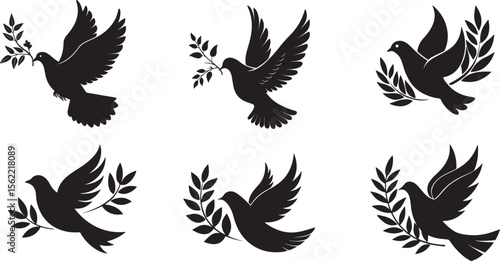 Elegant Dove Holding Olive Branch – Decorative Bird Silhouette Art
