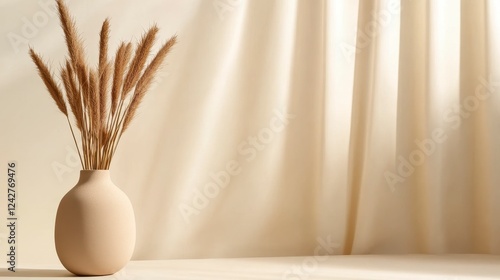 Elegant Dried Flowers in Simple Vase Against Soft Drapery Background